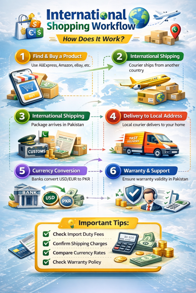 Buying smartphones, gadgets, and electronics from international stores has become easier than ever. Platforms like Amazon US, AliExpress, eBay, and brand websites often offer better deals, early launches, or exclusive models.