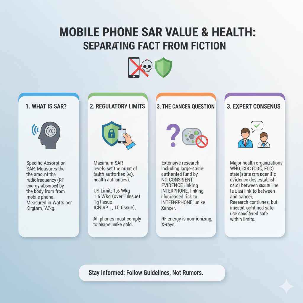 In today’s world, almost everyone carries a smartphone. With it comes frequent questions about radiation and health risks — especially the SAR value listed in phone specs and fears about cancer. Let’s break this down clearly and factually.